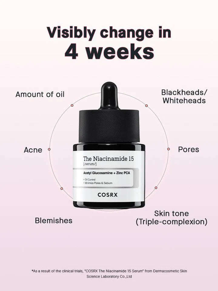 Piel más limpia, uniforme y sin exceso de sebo. Este potente suero mejora visiblemente desde la primera semana y ayuda a minimizar imperfecciones.